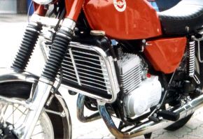 Die 40-PS-Maschine war zunächst nicht für die Öffentlichkeit bestimmt und rollte noch auf Drahtspeichenrädern, während die 27-PS-Variante auf der IFMA wie die gesamte 1977er Modellpalette Grimeca-Druckgußräder vorzeigte. Wie bei der Umstellung auf Mikuni-Vergaser spielten finanzielle Gründe eine große Rolle: Die kompletten Gußräder ließen sich für den Preis einer Stahlfelge (ohne Speichen!) produzieren, und der Mikuni-Vergaser kam im Einkauf gegenüber dem Bing deutlich billiger.