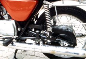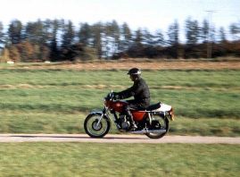 Um die Straßenlage kümmerte sich eine verwindungssteife Marzocchi-Telegabel, dreifach verstellbare Koni-Federbeine und 18-Zoll-Niederquerschnittsreifen von Metzeler. Das Cockpit mit Tacho und Drehzahlmesser sowie die Armaturen und die Schutzbleche stammten aus den hauseigenen Teileregalen. Bei den Seitendeckeln und dem 16 Liter fassenden Tank war allerdings pure Handwerkskunst angesagt: Alle Teile wurden als Einzelanfertigung aus Alu gedengelt.